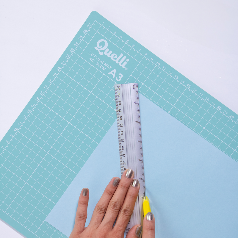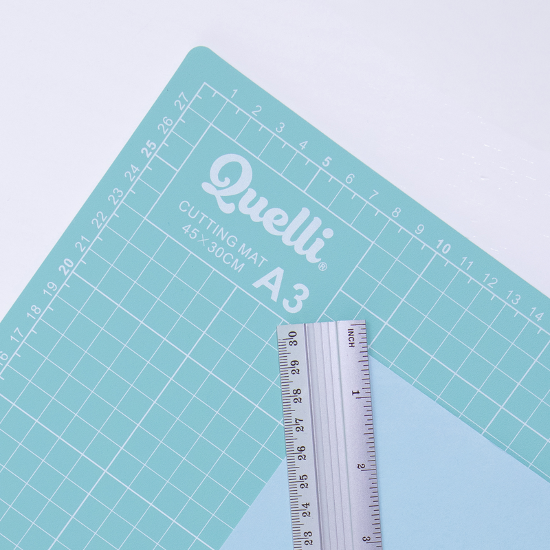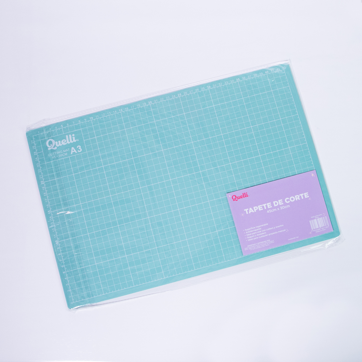 El tapete de corte Quelli está diseñado para mantener el material en su lugar brindando una superficie suave, duradera, reutilizable y con medidas optimizadas para la realización de cortes precisos.