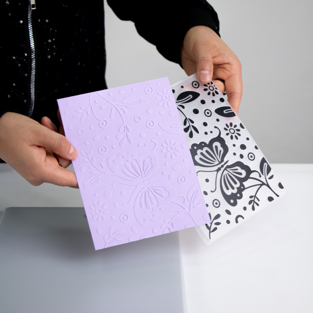 Se utiliza principalmente en manualidades, scrapbooking, tarjetería, invitaciones, empaques personalizados y proyectos de papelería creativa. La carpeta para emboss permite realzar diseños, añadir textura y dar volumen a las superficies de papel o cartulina, ofreciendo un toque distintivo y elegante.