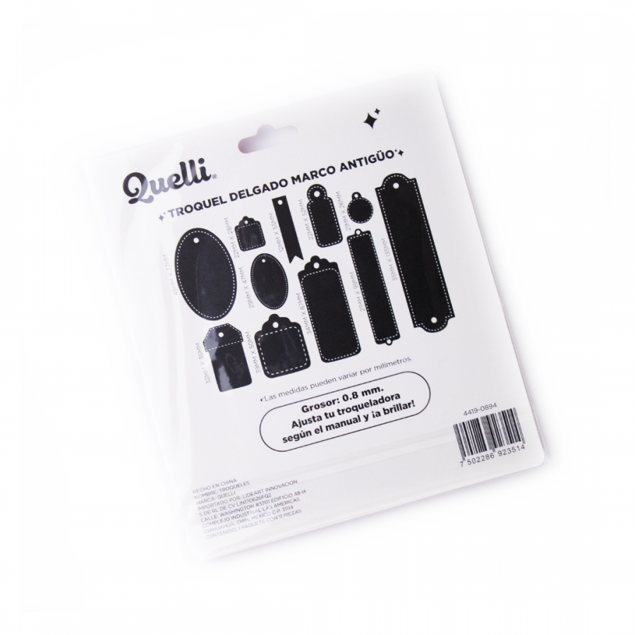 Los troqueles para manualidades Quelli son herramientas diseñadas para cortar con precisión diferentes materiales que permiten crear diseños detallados y consistentes cuando se utilizan con una máquina troqueladora. Su estructura duradera y su compatibilidad con una amplia gama de equipos los convierten en un elemento esencial para proyectos de manualidades, diseño y papelería creativa.