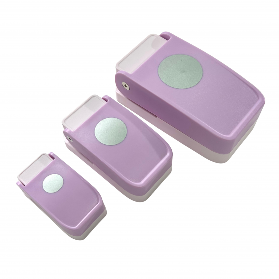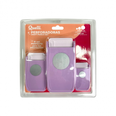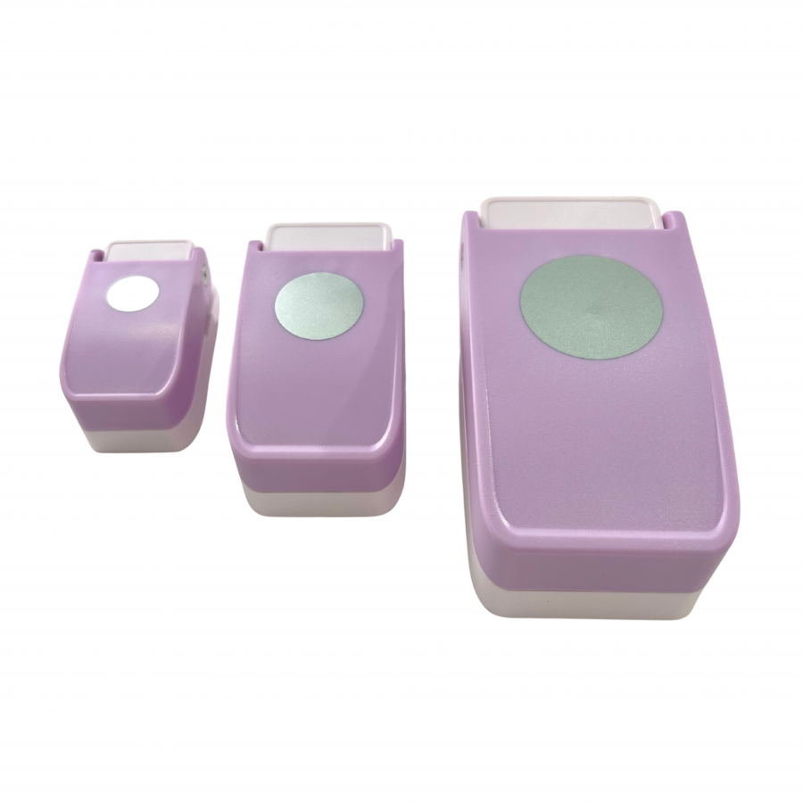 Set de perforadoras manuales con forma de círculo, diseñadas para crear cortes precisos y limpios en papel y cartulina ligera. Incluye tres tamaños diferentes: 16 mm, 25 mm y 38 mm, lo que permite realizar múltiples proyectos de manualidades, decoración y papelería creativa. Su diseño ergonómico facilita el uso continuo y ofrece un resultado consistente en cada perforación.